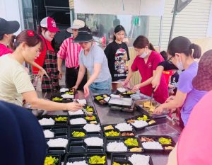 Bà con chung tay nấu hàng trăm suất cơm cho đồng bào bị nước lũ cô lập